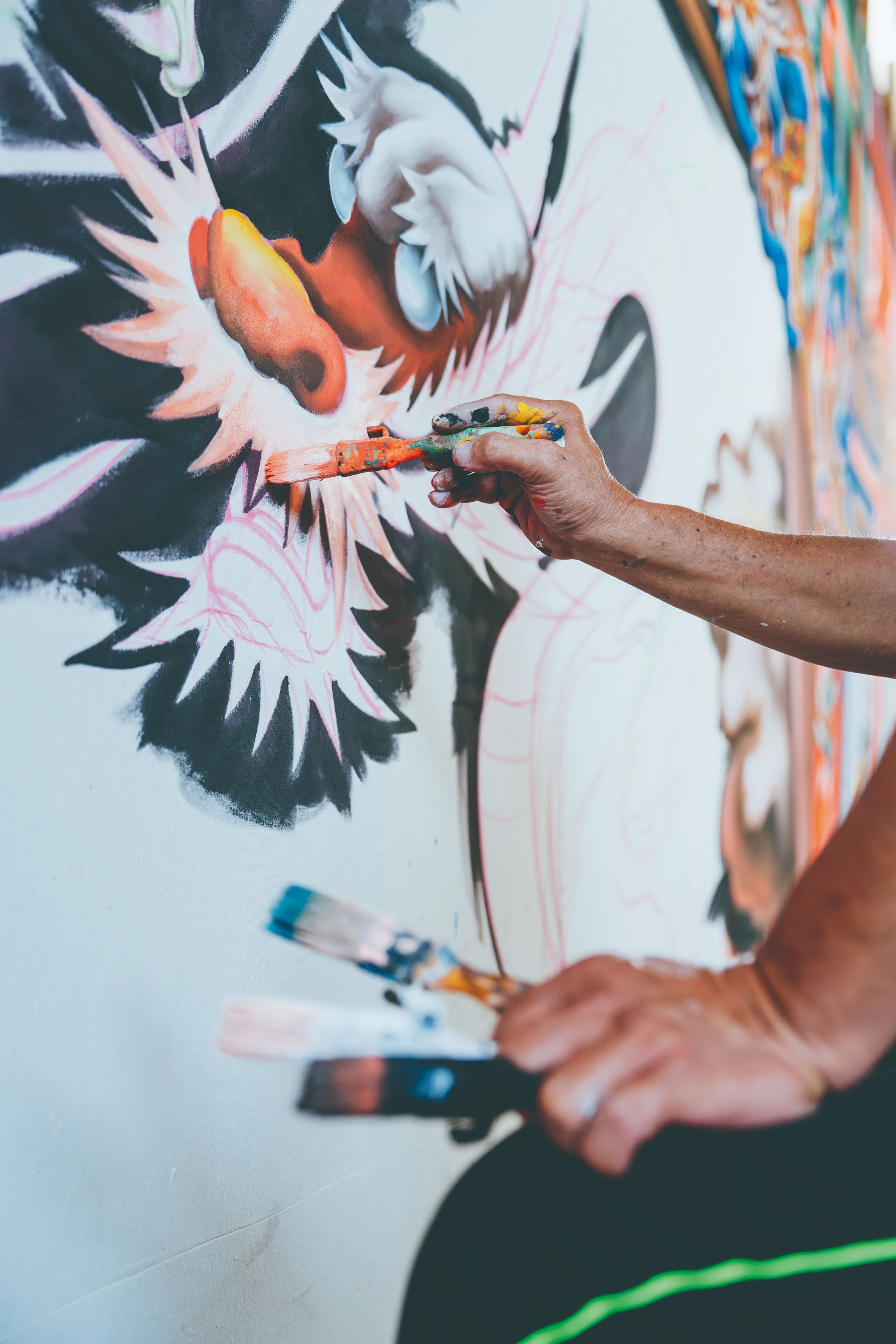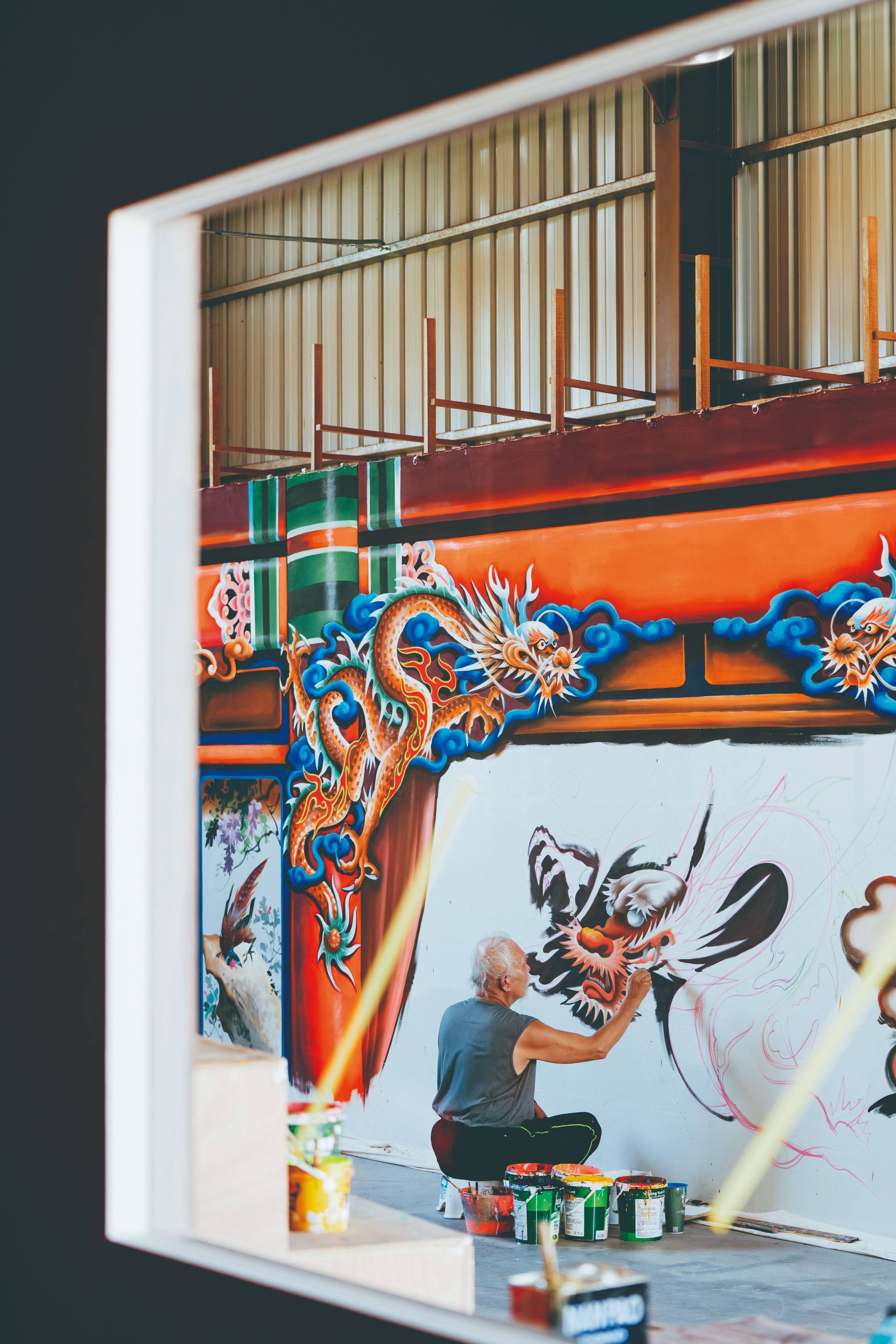回望過去20年布景彩繪風格的變化,陳冠良有著深刻感觸。「早期布景師傅功底深厚,畫出來的場景層次分明、意境豐富。而隨著時代演進,後來的布景轉向螢光效果,繪畫逐漸變得制式且大眾化,已少有跳脫傳統框架的特色。」他慶幸自己曾紮根於布景、電影看板、水墨人物和廟宇彩繪等不同領域,日積月累的實力讓他將這些技藝融合成獨有的個人風格。